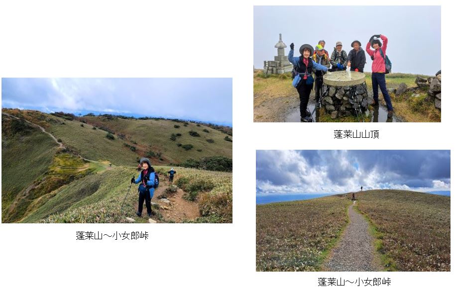 小女郎ヶ池から折り返し蓬莱山に向かうが、朝方かかっていた霞がとれ左側の山並が遠方まで見え圧巻。