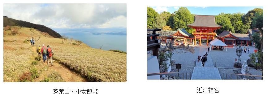 民宿山宗⇒白髭神社(8:35)⇒びわ湖バレイロープウェイ駐車場(9:30)⇒びわ湖バレイロープウェイ発(10:00)⇒びわ湖バレイロープウェイ着(10:20)→打見山(10:20)→蓬莱山(11:10)→小女郎ヶ池(11:55)→蓬莱山(12:50)⇒打見山(13:10)⇒びわ湖バレイロープウェイ駐車場(13:30)⇒近江神宮(14:30)⇒びわ湖大津館(15:10)⇒ルートイン亀山(18:00)