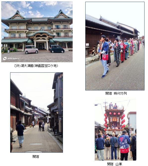 偶然にも幸運に恵まれ、その日は「街道祭り」のイベントがありました。朝早くから街道歩いた為、祭りの開会式を観覧する事が出来ました。私にとって「祭りの開会式」なんて初めての体験なのである意味感動しました。時代行列、山車(やま)が移動、方向転換するのも見ることができました。