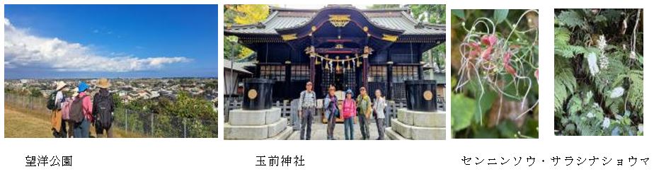 軍荼利山の山頂までの山道が落ち葉と急登で滑りやすかったですが 皆さん頑張って登り 山頂に立ちました。他の会の方にお花の知識が豊富な方がいて興味深い説明を聞くことが出来ました。ガス井戸の説明を受けて なだらかな道を会の枠を超えてお喋りしながら賑やかに歩き、 望洋公園に上がると わーっと歓声が上がる。遠目に太平洋が見え 高いビルはなく 風も穏やかで 心地よかったです。上総一ノ宮駅まで歩き 一度解散としました。