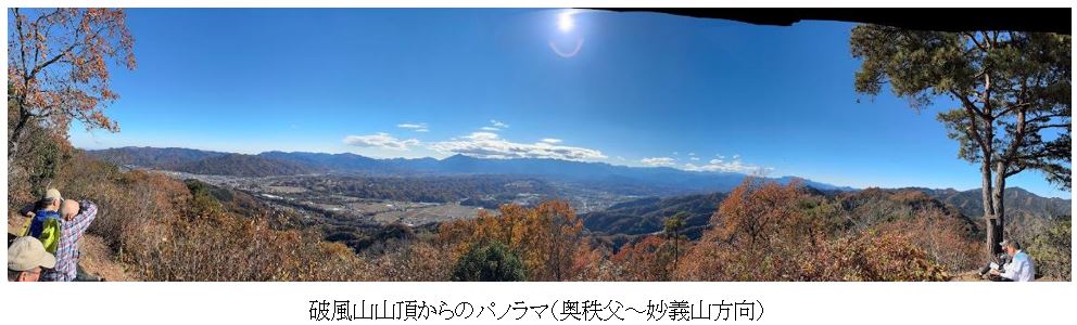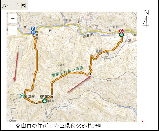 秩父鉄道皆野駅⇒札所前バス停(集合)→水潜寺(参拝)→水潜寺登山口10:46→11:40札立峠11:46→11:56破風山12:34→(猿岩、風戸)→13:38満願の湯