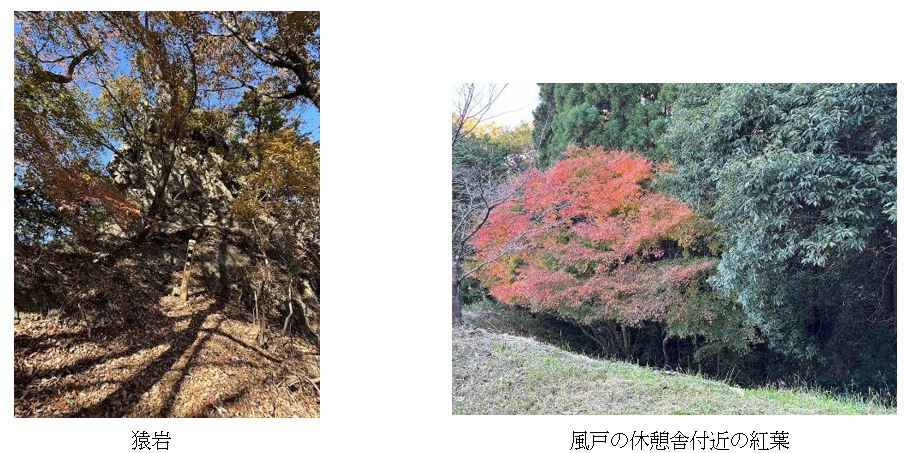 猿岩では「どこが鼻か?どちらを向いているのか?」と話が盛り上がり、そこからしばらくアルパインムードのある稜線歩きを楽しんだ。やがて山靴の道分岐から満願の湯方面へ下山開始。落ち葉が敷き詰められた道はふかふかで歩き心地が良く、紅葉(特に風戸の休憩舎付近)は素晴らしかった。