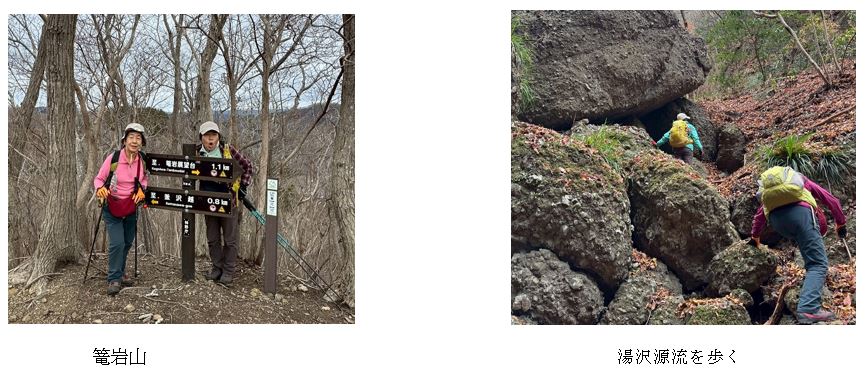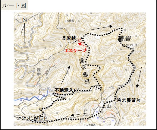 5:30ピックアップ⇒8:00つつじが丘駐車場→一軒家→不動滝→湯沢→釜沢越11:10→12:00篭岩12:20→14:00篭岩展望台14:30→15:12つつじが丘駐車場