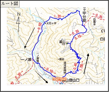 幕山登山口8:00→9:23幕山9:48→自鑑水・大石ヶ平分岐10:10→幕山登山口11:20