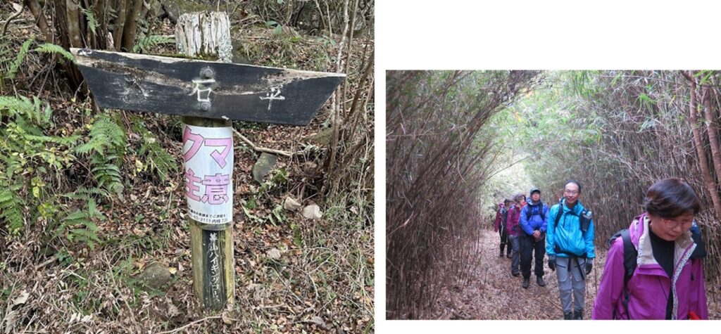 大石平の標識、この辺でもクマ🐻❓ 竹のトンネルの様なトレイル
