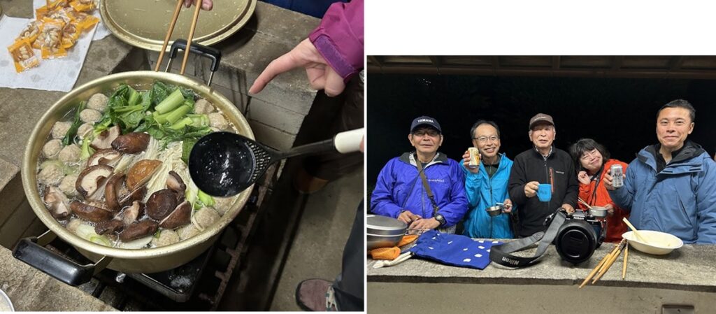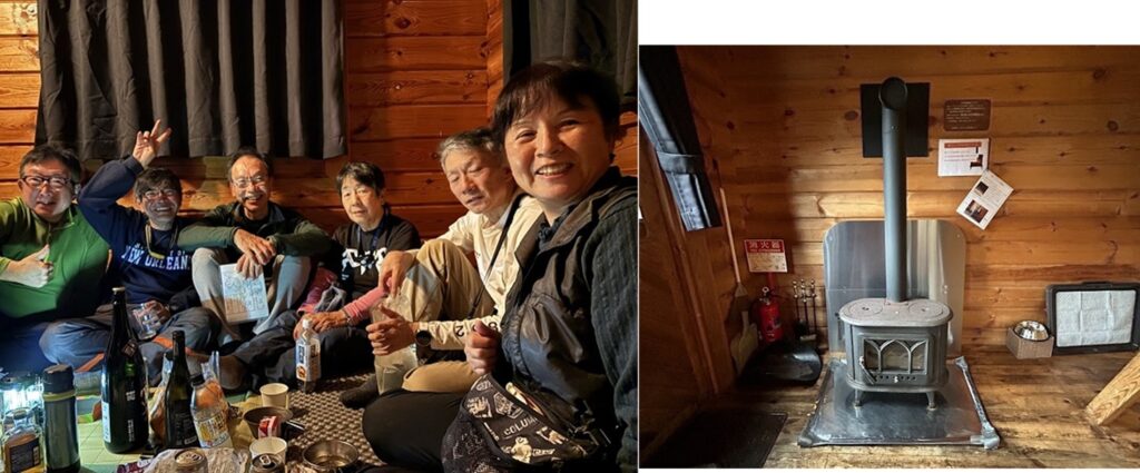 二次会で、全員集まる。飲みたい人は続き。お酒、おつまみの差し入れが多かった。宿泊はケビン。お部屋は綺麗で、エアコンがあって暖かく眠れた。お食事当番さん、有難う。