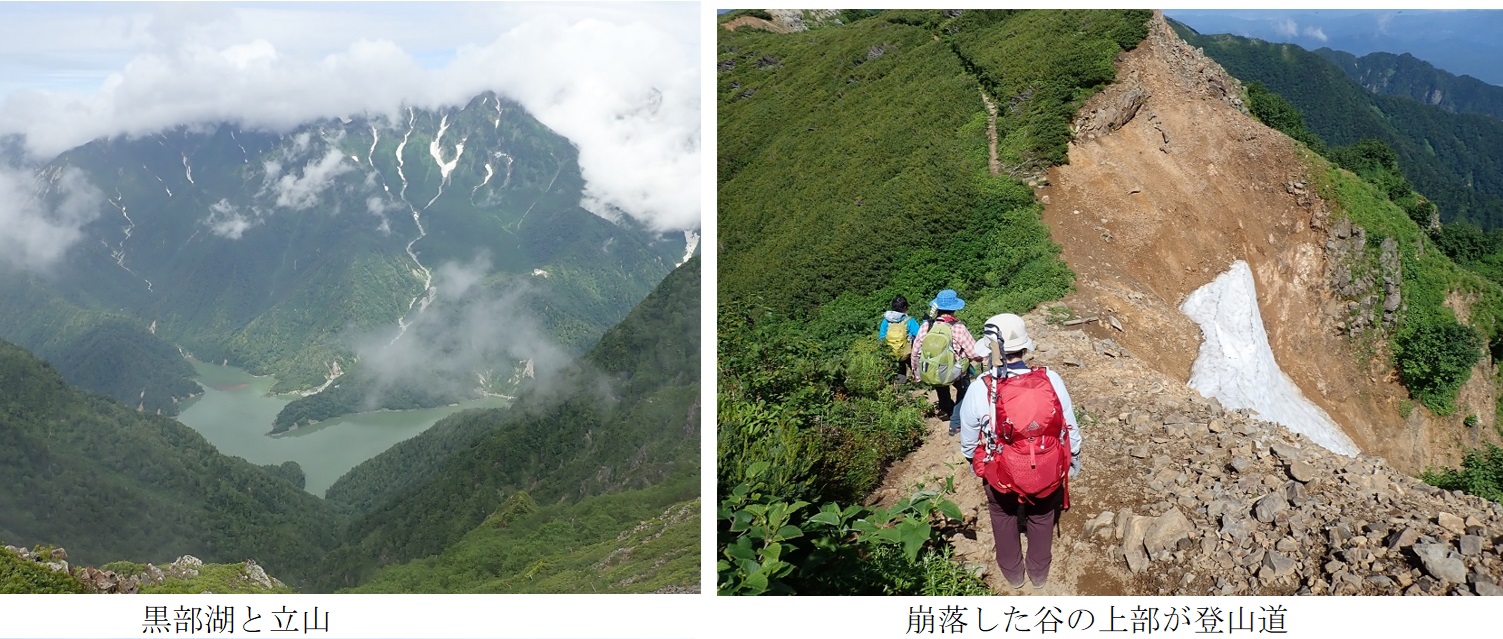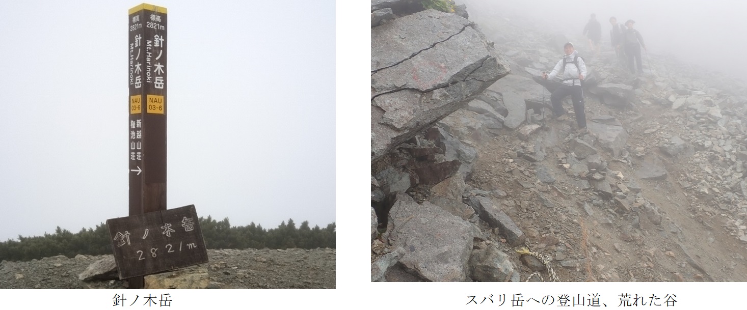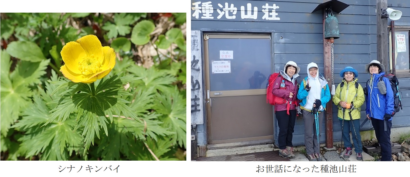 翌日早出する。針ノ木からの下りに崩落した谷を恐々渡る。曇りから小雨になる。また雨の中を結構な岩場を下る。鳴沢岳付近で何とか雨が止み、展望が開ける。眼下に黒部ダム、対岸に剣岳、立山岳が見える。鳴沢岳付近からは高山植物が多かった。何とか頑張って種池山荘まで到着。