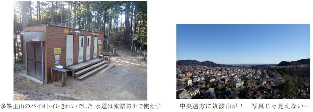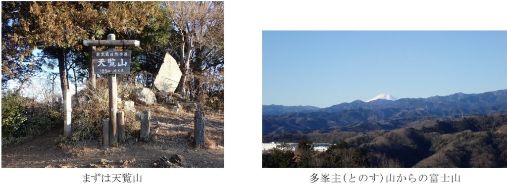 まずは天覧山、多峯主(とのす)山。どちらも真っ白な富士山が美しく、展望が良い。多峯主山を少し過ぎたところにバイオトイレがあり、比較的きれいだった。そこからすぐ「久須美坂」と書かれた看板の所を入っていく。気づいたら大黒山。