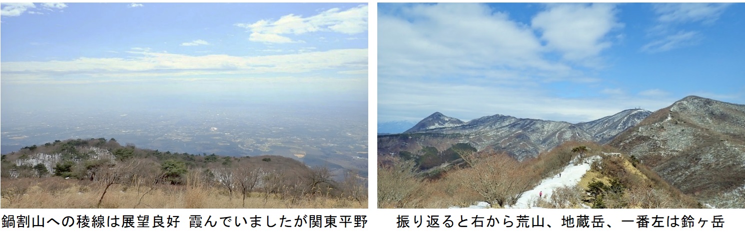 こちらは人が多い。途中の稜線上はとても展望が良く、関東平野、上州武尊山、谷川岳、浅間山などが美しい。こちらもドロドロの箇所があるが、気持ち良く歩ける稜線だった。鍋割山山頂は広く、展望が良い。風も無く、少し暑いぐらいの陽気の中、まったりと昼休憩。
