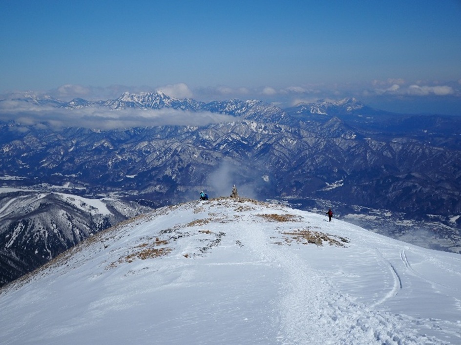 8年前は日帰りで往復できたルートに挑んでみた。今回はさすがに飛ばせないなと思いつつほかの人に抜かれながらも丸山ケルンまで到着した。時間的には十分山頂を狙える。