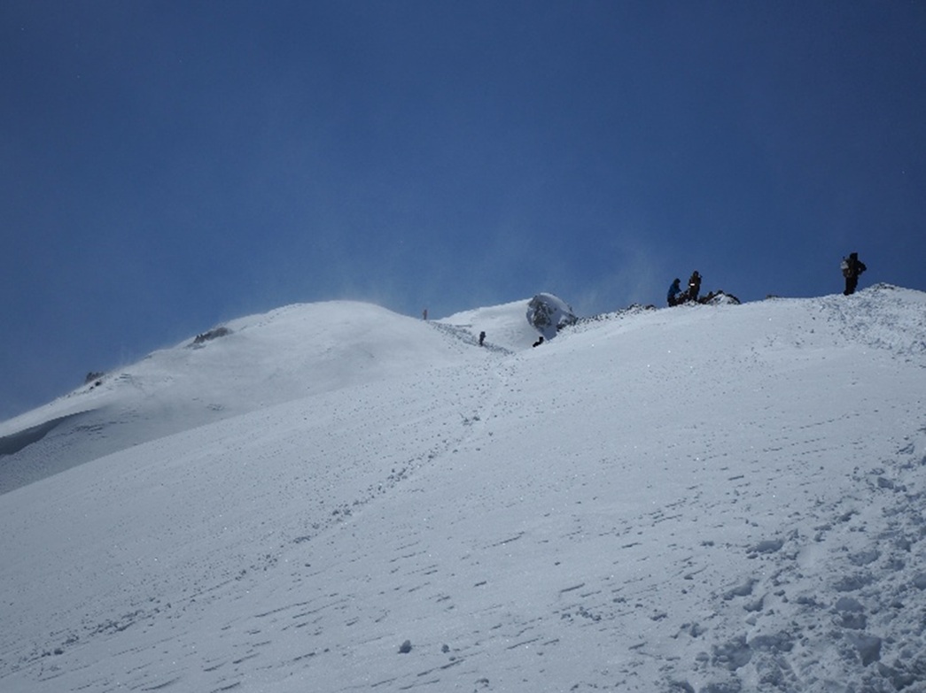 しかしここからが遠かった&先行していた人たちが下ってきてて「稜線は爆風なので頂上山荘で引き返した」と口々に言ってて緊張する。