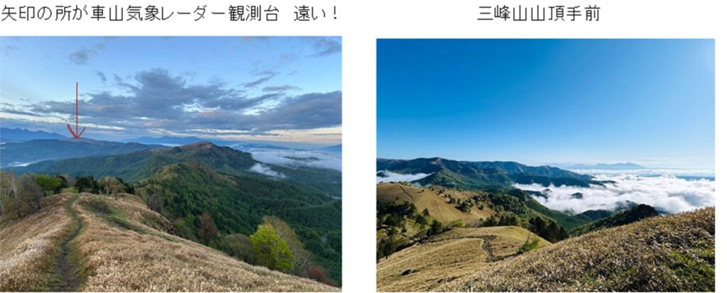 鹿の群れが目の前を横切っていく。三峰山の頂からは360度の大展望、41の百名山が見えるのだそうだ。