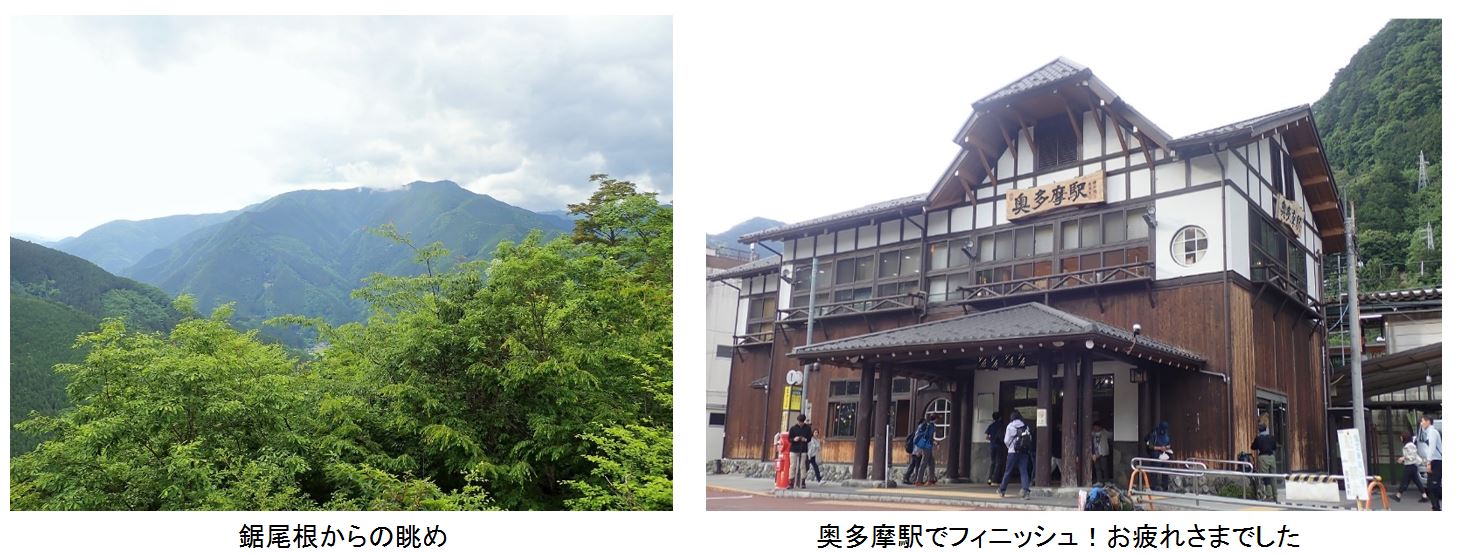 鋸山から奥多摩駅に下る鋸尾根は確かに長かったが、岩場もあり、個人的には楽しむことができた。最後の愛宕神社への登りとそこからの下りの階段で足にだいぶ疲労を感じながらも奥多摩駅に到着。