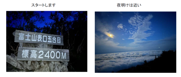 3:30富士宮五合目→6:00八合目→8:00剣ヶ峰8:20→9:30八合目→11:00富士宮五合目