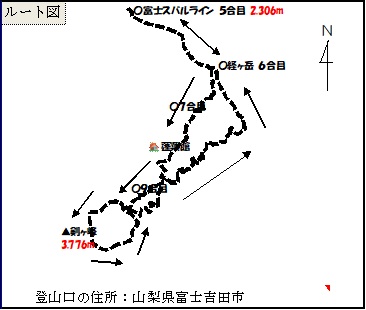 を待つが現れず 5:10→御来光館 6:30→本8合目 富士山ホテル6:45→経ヶ岳 9:10→5合目 9:45Ⓖ