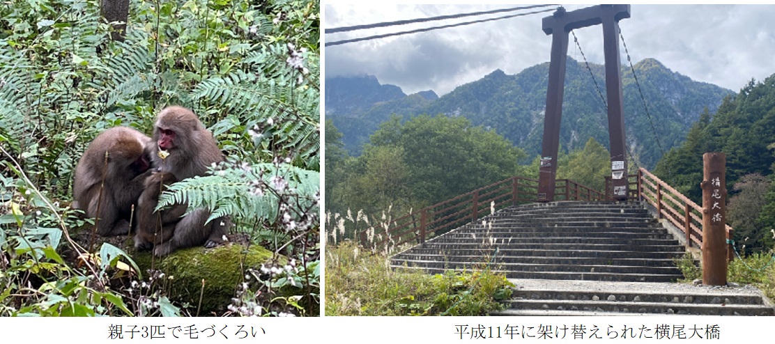 引き返しの横尾大橋手前の登山道で、10数メートル先で大人のクマが登山道を横切っていった。