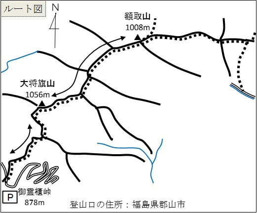 御霊櫃峠P9:00→9:50黒岩山→10:40大将旗山→11:55額取山12:25→13:35大将旗山13:50→14:15黒岩山14:30→15:05御霊櫃峠P