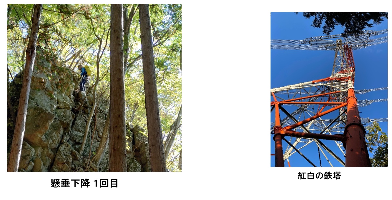 急斜面のトラバースも危険なのでルートを変更し、西南の尾根ルートをショートカット。906mピークから沢を下り、直接、林道に下山するルートを取った。906mピーク周辺での下降点の探索や、沢下り(懸垂下降3回)などで時間がかかったが、前半は予定より早く歩けたことと、計画に余裕を持たせていたので予定時刻前に下山することが出来た。林道に出る手前では数本の作業道がありルートを確認・修正しながら林道に出た。