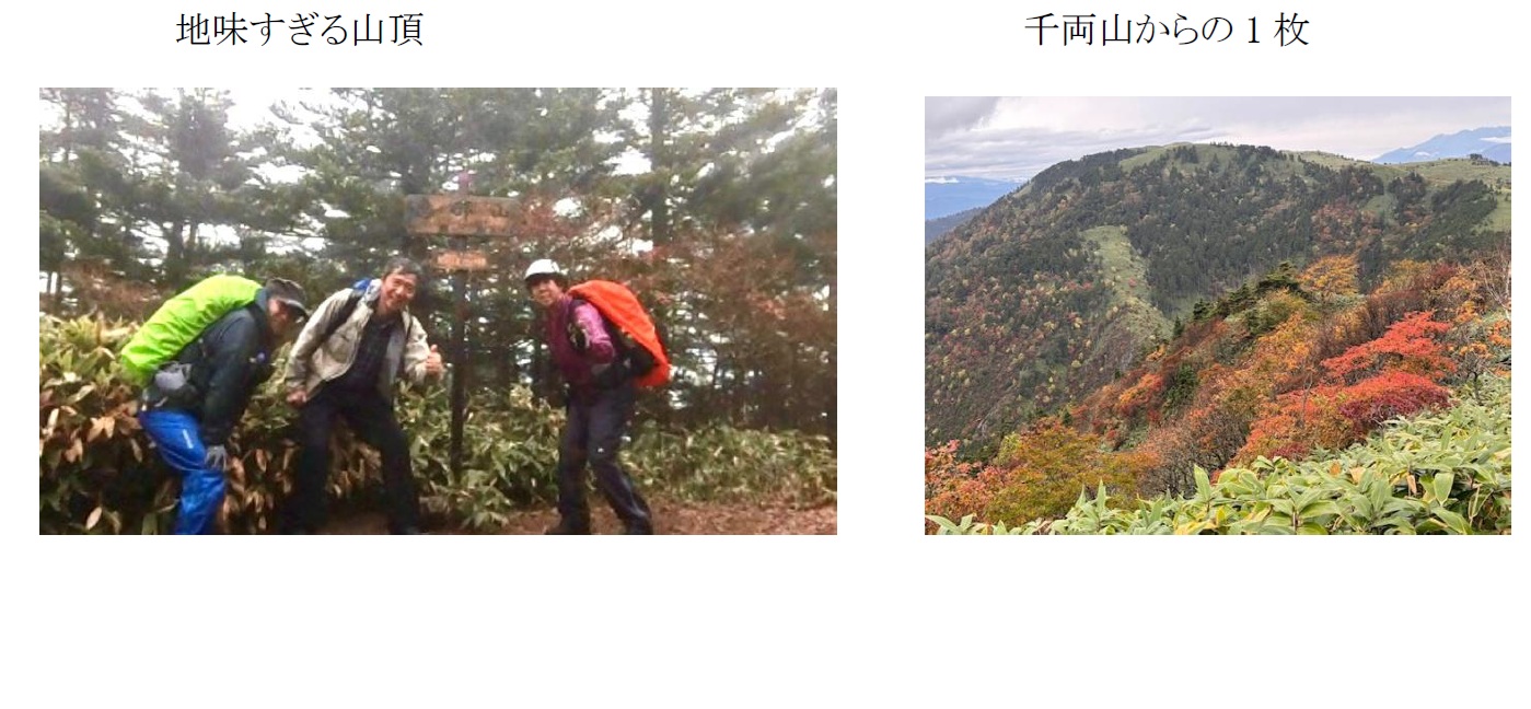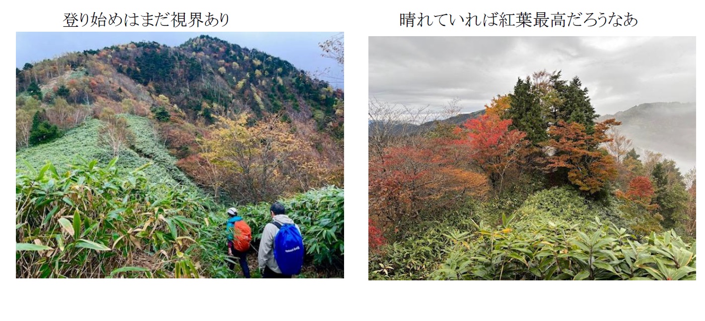 鳥越峠までは急登、その後は小刻みなアップダウンを繰り返しながら徐々に高度を上げていく。晴れていれば紅葉が見頃だと思われるが、ガスに覆われて展望なし。恵那山の山容も拝めず、ひたすら登山道を歩く。山頂手前の登りもかなりキツい、やっと尾根に乗っても景色なし・・山頂も木々に覆われて何も見えず・・・・地味な100名山NO.1は納得できる。