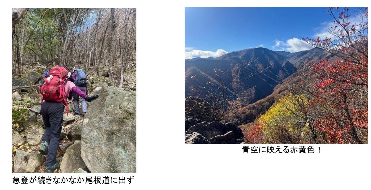 しかし、登山口までの長い林道を歩いていくうちに青空が見え始めた。林道には動物捕獲用の大きな檻があって、いかにも熊の出そうな山だ。登山口からはかなりの急登が続いたが、木々の隙間からのぞく青空の面積がどんどん広がって心も足取りも軽くなった。