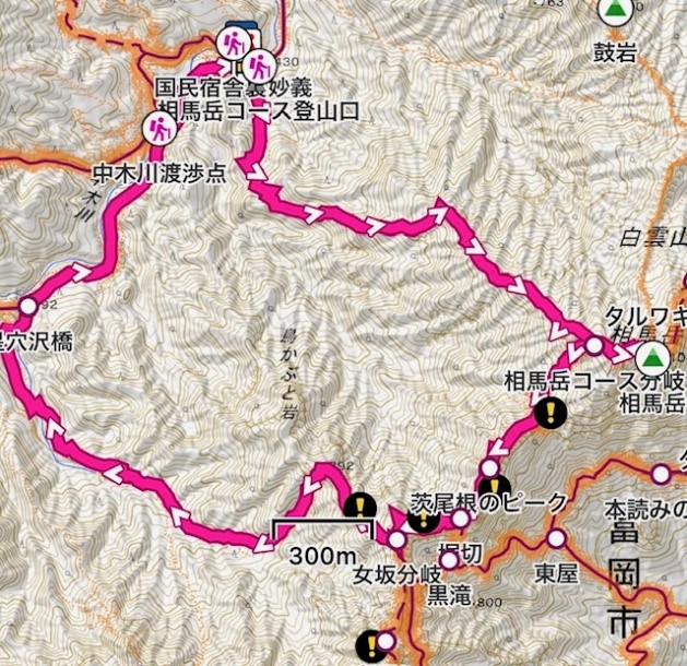 7:30国民宿舎裏妙義→9:40相馬岳10:00→バラ尾根11:10ホッキリ→分岐→12:50国民宿舎裏妙義