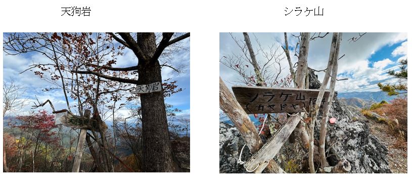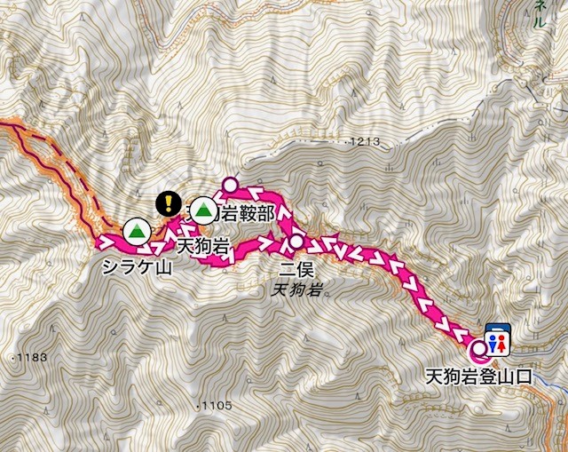 7:00天狗岩登山口→天狗岩→8:30シラケ山→9:50天狗岩登山口