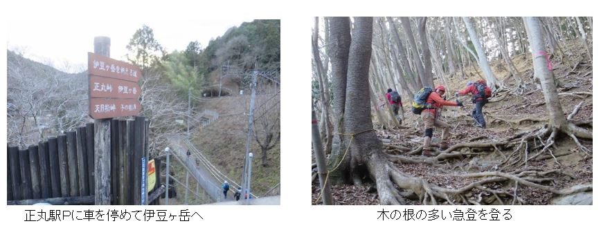伊豆ヶ岳の下りは、急な上に地面が乾ききって滑り易かった。落葉も深く積もっていたので緊張の連続だった。伊豆ヶ岳の南面に出ると青空も見え日差しも温かくなって気持ちよく歩けた。