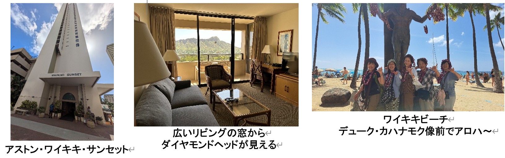 予想通り入国手続きに1時間半ほど要したが、何事もなく通過出来ほっとする。ハイウェイを30分ほど走り、ホテル「アストン・ワイキキ・サンセット」に到着。