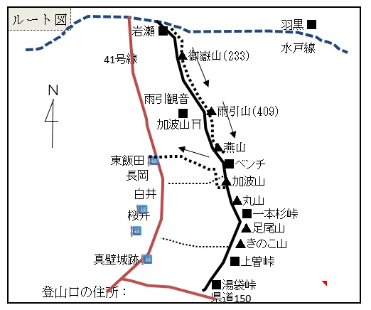 柏駅538⇒713岩瀬駅726→742御嶽山登山口→817御嶽山826→912雨引山939→(東屋で昼食休憩)→1211燕山1226→1330加波山1342→1457加波山登山口→1551長岡バス停⇒岩瀬駅⇒1912柏駅 歩行時間:8時間(昼食休憩を除く活動時間)13.7㎞