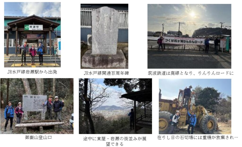 筑波連山をホームグラウンドの一つとする「かがりび山の会」の先輩の案内で、春を迎えた筑波連山北部を歩いた。JRを利用し、常磐線から水戸線へ乗り継ぎ、岩瀬駅近くの御嶽山登山口(81m)から歩き出す。御嶽山(231m)、雨引山(409m)、燕山(701m)、加波山(709m)を縦走し、加波山登山口(184m)へと下るコースは、変化に富み、発見と歴史に満ちたものだった。