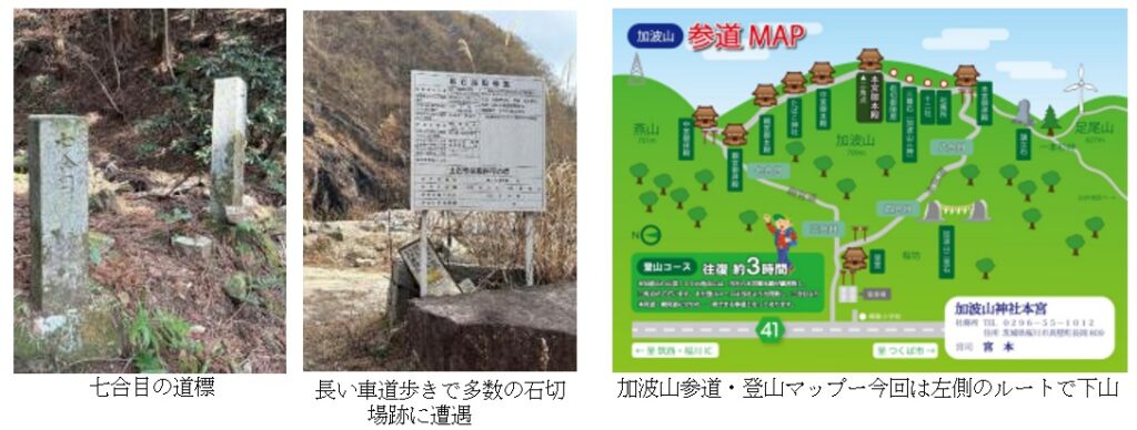 まず、私にとってJR水戸線(友部―小山間)に乗車するのは初めてである。かつて土浦と岩瀬を結んでいた筑波鉄道の跡地は、現在「りんりんロード」として整備されている。稜線上では、先輩の案内で、重機などが放置された石切場にも立ち寄った(ガイドブックに載っていない道を迷いなく進んで)。下山した真壁町には、「真壁石」と呼ばれる高品質な国産花崗岩(御影石)の産地として栄えた往時の面影が色濃く残っていた。
