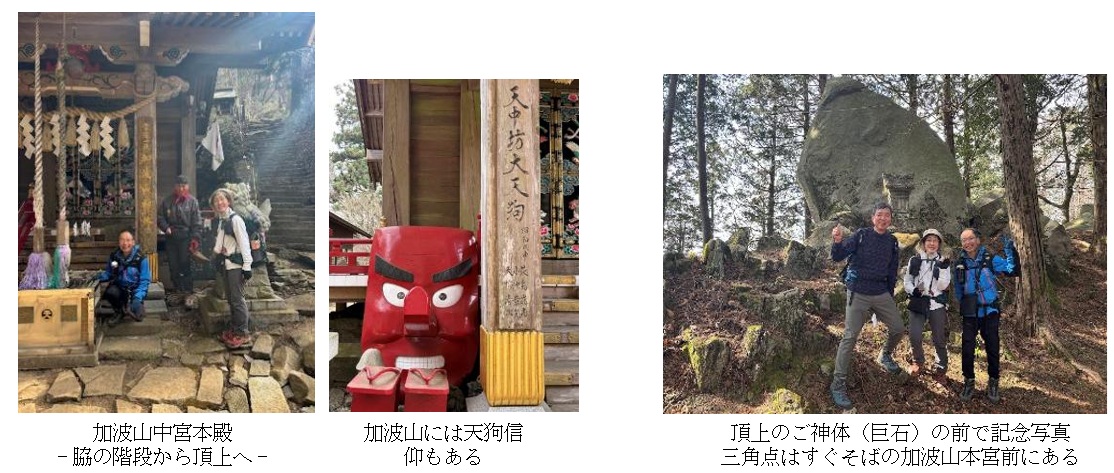 加波山山頂の巨石群(岩切御隠居)は、鳳凰三山・地蔵岳のオベリスクを彷彿とさせ(やや言い過ぎかもしれないが)、巨石をご神体とした山岳信仰の対象となったことが容易に想像できる。登山道の脇には多数の祠や社が点在し、信仰の山であることを実感させられた。こうした知識を、先輩は惜しみなく披露してくれた。