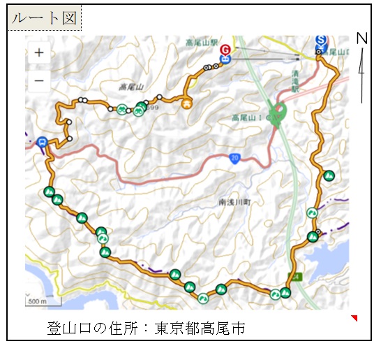 我孫子駅542⇒752高尾山口駅805→857八方台909→927草戸山937→854榎窪山859→1015泰光寺山1030→1044入沢山1103→1120中沢山1134→1153金毘羅山1204→1210大洞山1217→1236大垂水峠1250→1347高尾山1402→1425高尾山駅1430⇒清滝駅→高尾山口駅1509⇒1714我孫子駅